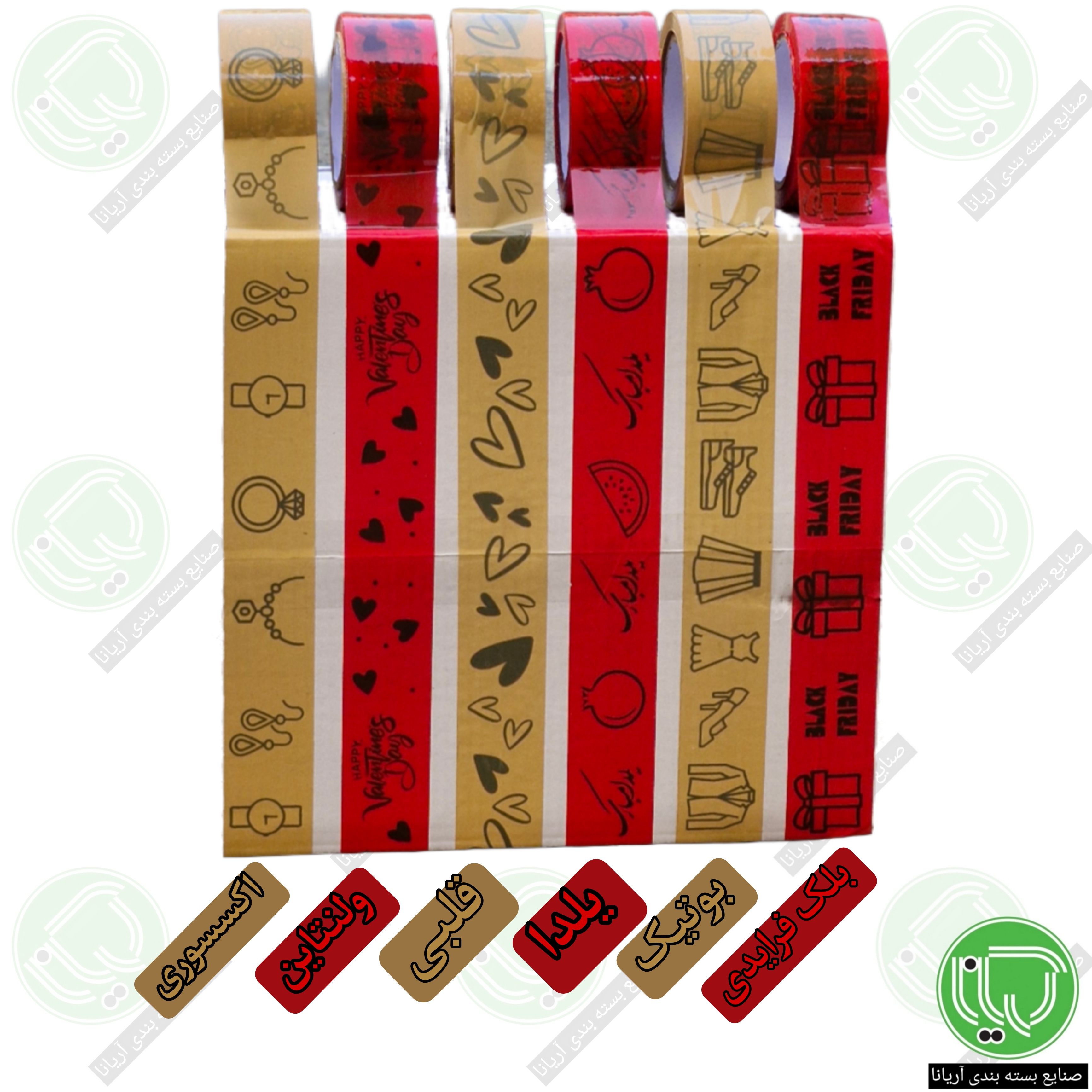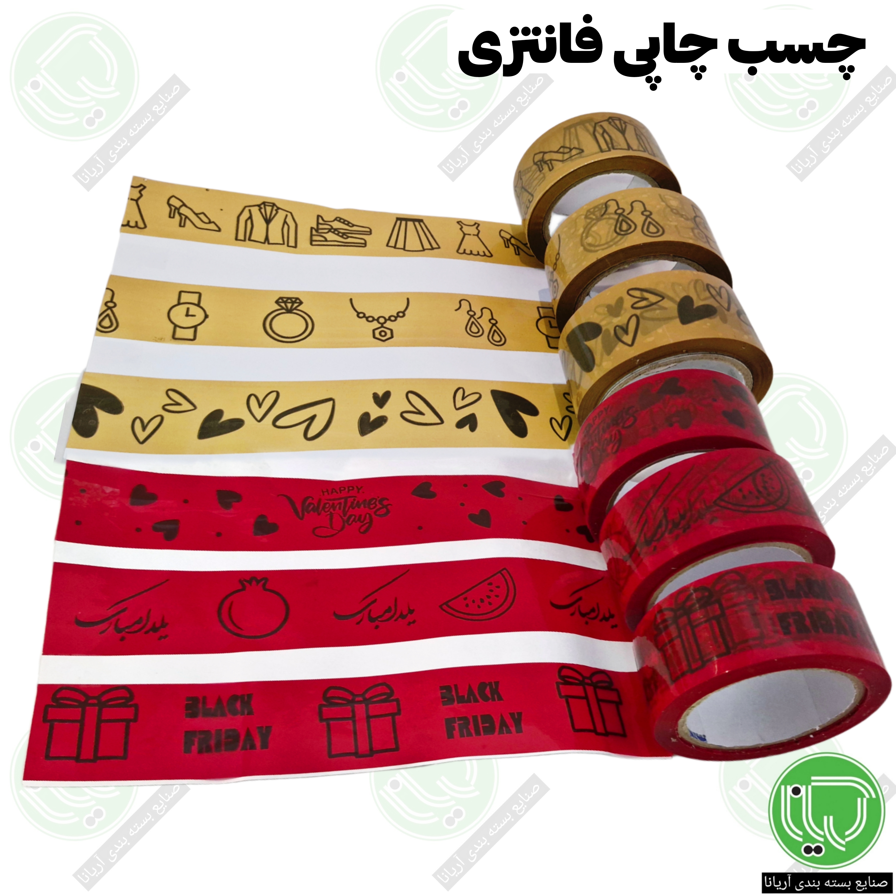 نوار چسب چاپی فانتزی رنگی محصولی خاص از صنایع بسته بندی آریانا است که برای اولین بار در ایران با طرح های آماده و روی زمینه های رنگی تولید شده است.این چسب ها در رنگ های قرمز و قهوه ای و با طرح های متنوعی از جمله ولنتاین، یلدا، بلک فرایدی، طرح قلبی ساده، لباس فروشی و اکسسوری عرضه می شوند.هر رول دارای طول ۹۰ یارد و عرض ۵ سانت است و به صورت پک های شش تایی در بازار ارائه می شود.چسب فانتزی آریانا گزینه ای جذاب برای فروشگاه های هدیه، بوتیک ها، گل فروشی ها و برند هایی است که به ظاهر بسته بندی اهمیت می دهند.برخلاف چسب های چاپی سفارشی که فقط در تیراژ بالا قابل تولید اند، این مدل ها به صورت آماده در دسترس هستند تا بدون نیاز به سفارش خاص، بسته بندی شما را خاص و چشم گیر کنند.